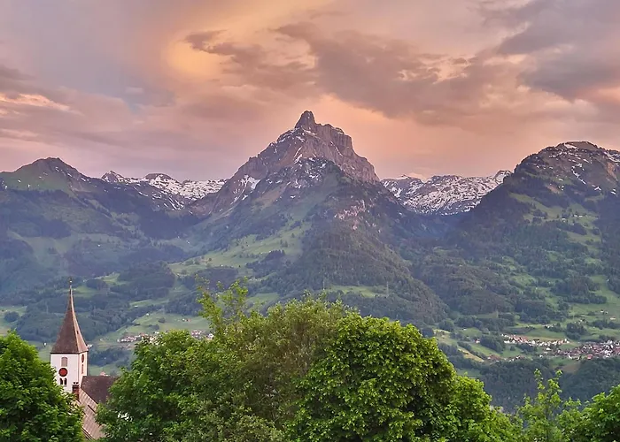 Beliggende i Amden er Large Apartment 8beds great for family&friends, Mountain View ferielejlighed en 4 værelser bolig med gratis parkering og en have. Denne indkvartering ligger kun 100 meter fra Sesselbahn Mattstock og 3 km fra Arven.